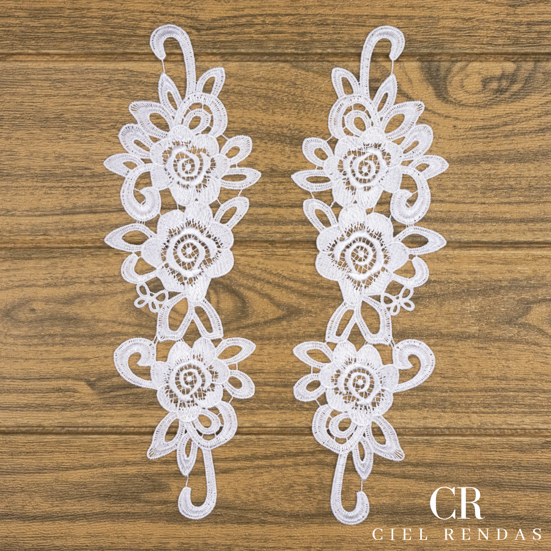 Aplicação Guipir Branca CH-3057 (10,0cm - 31,0cm)(6 pares).