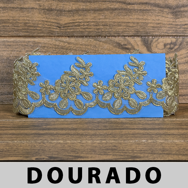 Tule Bordado Dourado CH-1974/B (8,5cm - 9,14m)